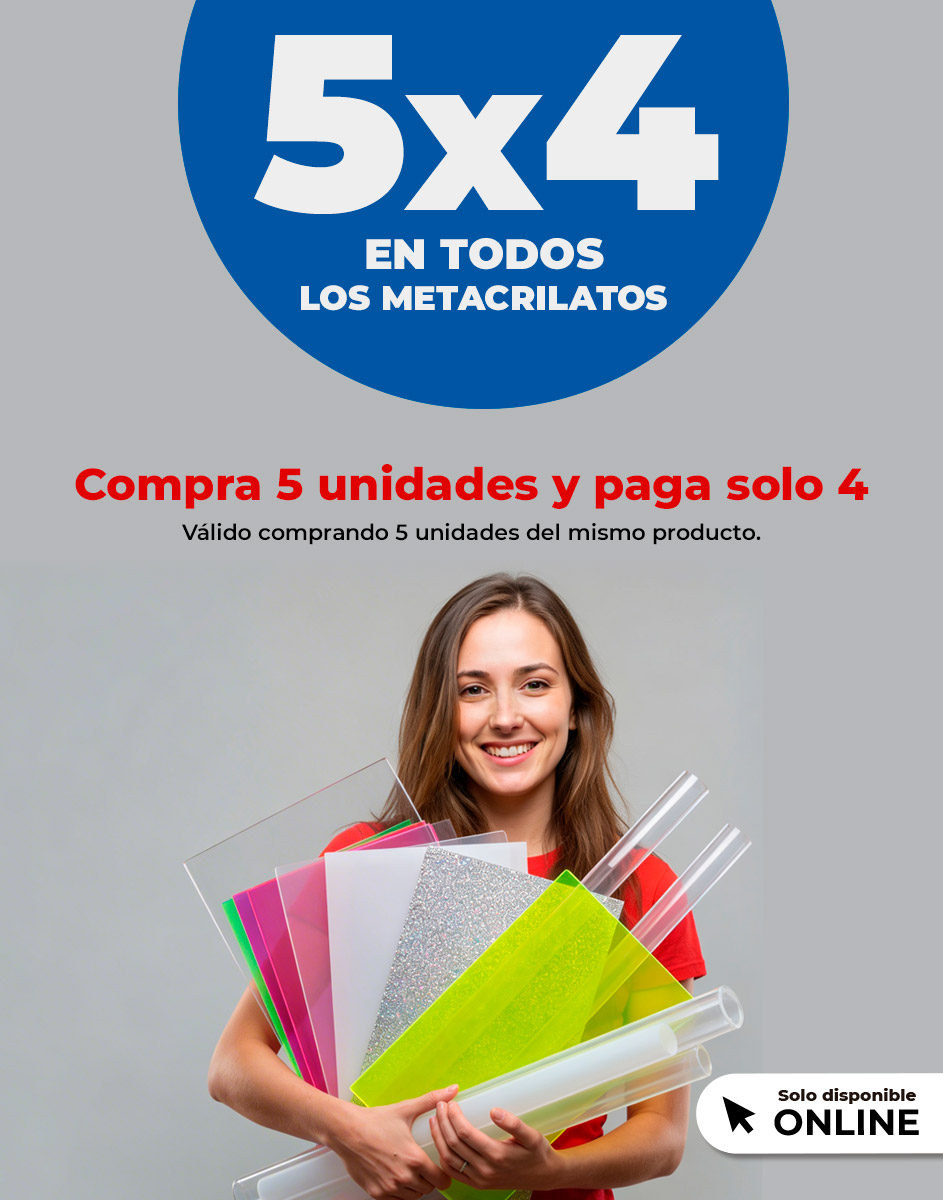 Aquí encontrarás todos y cada uno de los materiales propios para cualquier trabajo de bricolaje. Disponibles en distintos formatos a medida, colores e incluso acabados especiales, aquí podrás encontrar diferentes metacrilatos a medida. Pero, también, distintos termoplásticos como el policarbonato o el poliestireno.