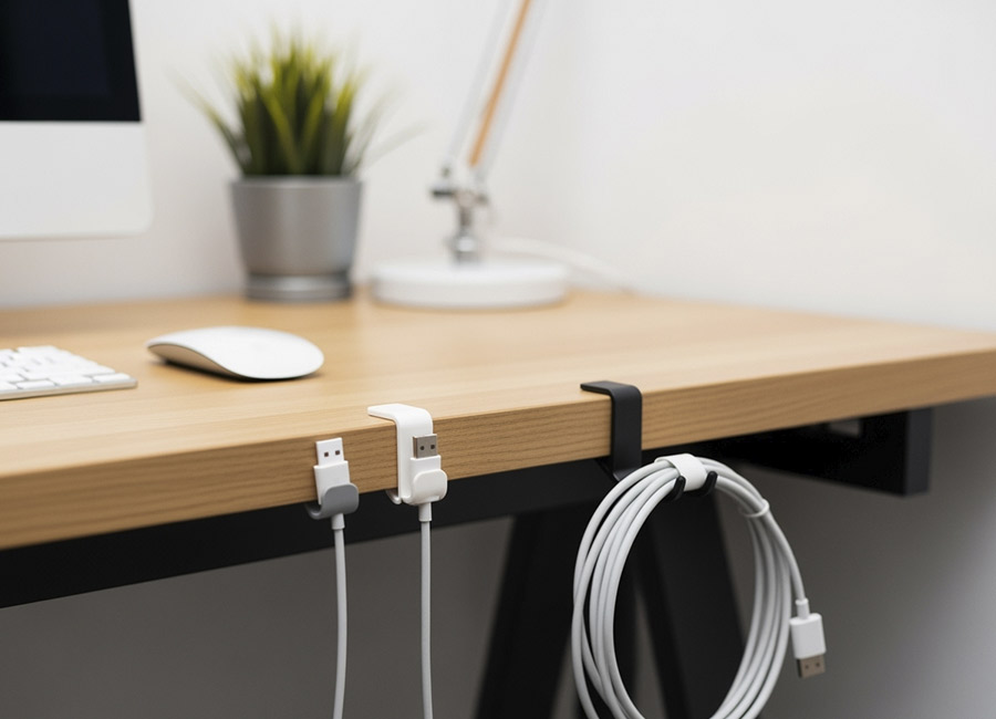 Otra opción de lo más decorativa y estética es utilizar ganchos para cables, aquellos que evitan que el cableado caiga al suelo y sean caldo de cultivo para nuestras caídas en el hogar.