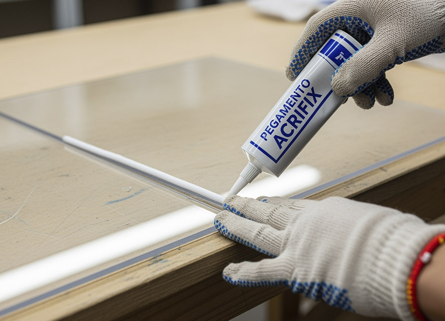 - Pegar metacrilato sobre metacrilato usando pegamento Acrifix