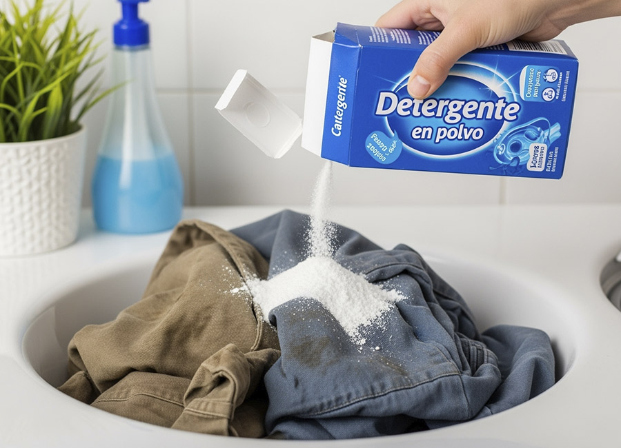 El detergente en polvo puede ser muy efectivo para eliminar manchas de grasa de la ropa de trabajo. Añade una cantidad generosa al agua del lavado y deja que la ropa se remoje durante unos minutos antes de meterla en la máquina.