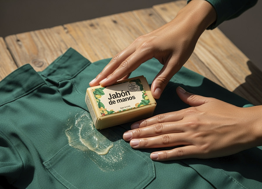 Para eliminar manchas de grasa de la ropa de trabajo, sigue estos pasos: