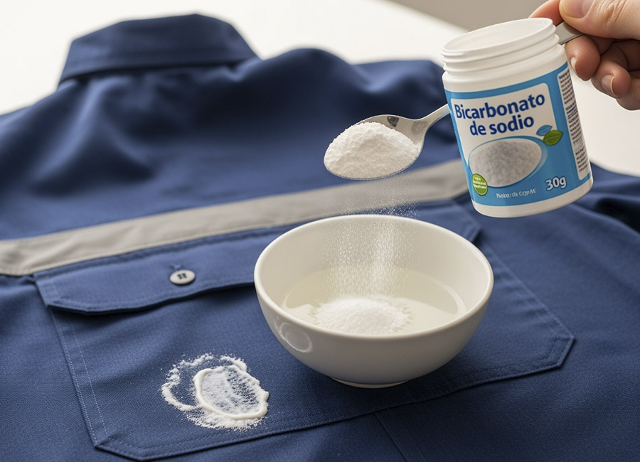 Este producto de limpieza se convierte en uno de los mejores productos para eliminar manchas de grasa de la ropa de trabajo. Mezcla una cucharada de bicarbonato de sodio con un poco de agua para formar una pasta, aplícala sobre la mancha y deja que actúe durante unos minutos antes de lavar la ropa. Para conseguir un resultado óptimo, te recomendamos lavar la ropa a máquina para retirar cualquier resto de grasa que pueda quedar en ella.