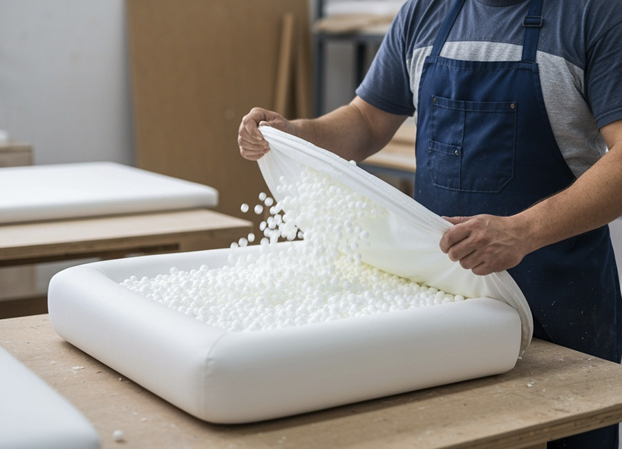 Algunos fabricantes de muebles utilizan poliespan reciclado como relleno en cojines y asientos, proporcionando comodidad y, al mismo tiempo, reduciendo costes y mejorando la huella ecológica.
