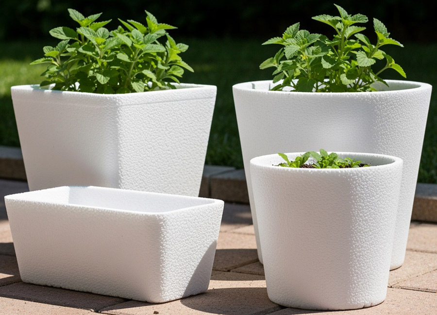 El corcho blanco reciclado también puede transformarse en macetas y productos de jardinería. Su capacidad de retener la humedad y su ligereza lo hacen adecuado para estas aplicaciones.