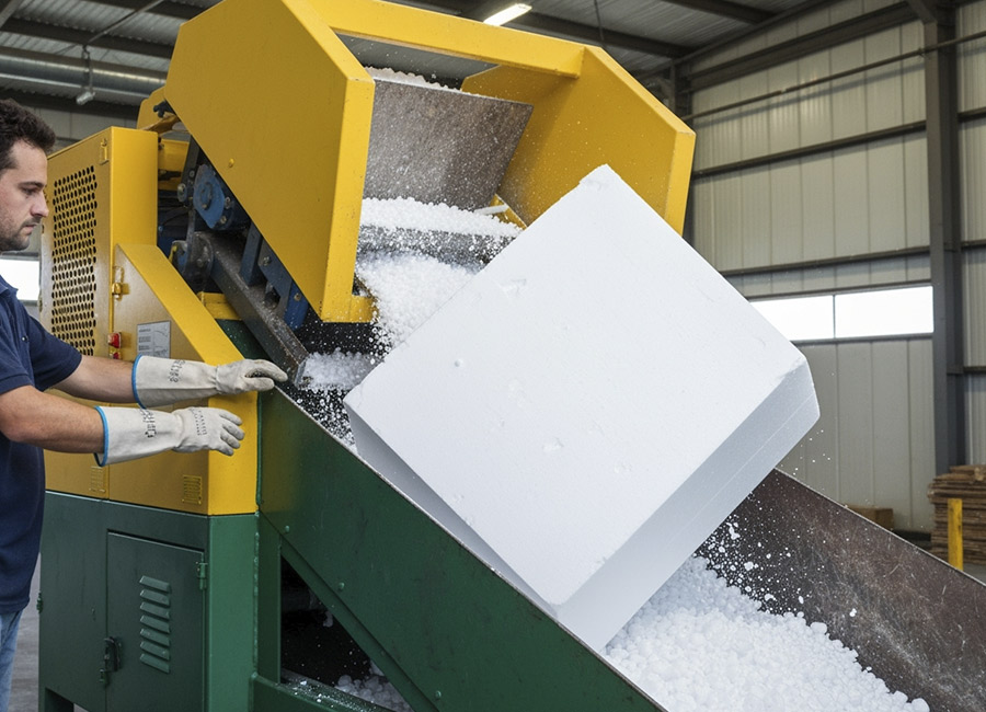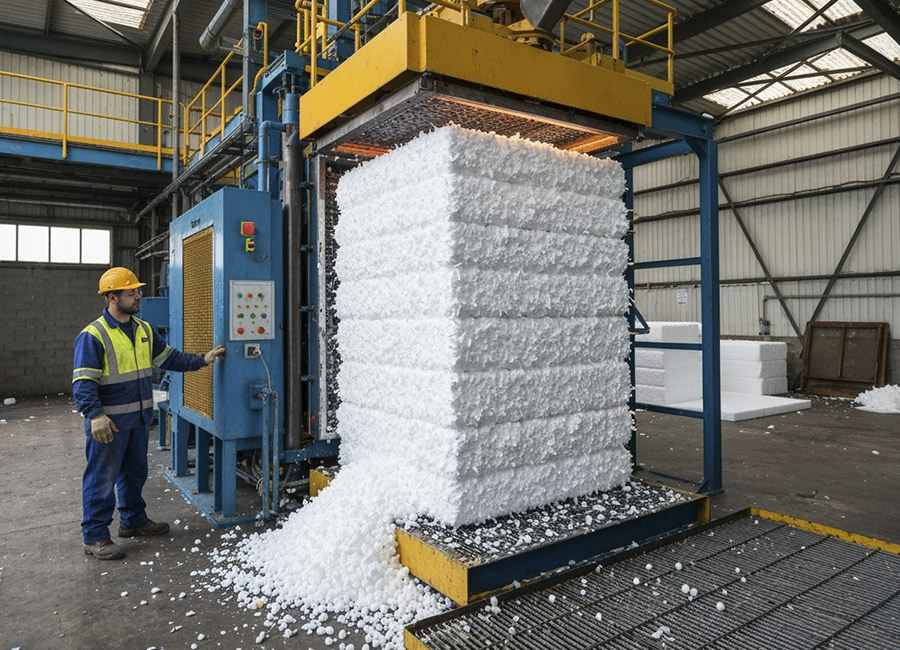 Las perlas trituradas de poliespan se pueden fundir y extruir en una variedad de formas, como bloques, láminas o vigas. También es común compactar el porexpan triturado en bloques más grandes mediante la aplicación de calor y presión.
