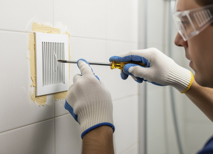 Instalar la rejilla de ventilación para el baño es una tarea sencilla. Como siempre, desde Servei Estació recomendamos trabajar con total seguridad. Por eso, te animamos a utilizar guantes para protegerte las manos y unas gafas de seguridad para evitar que te caiga algún resto en los ojos. A partir de ahí, la colocación es una tarea fácil de llevar a cabo.