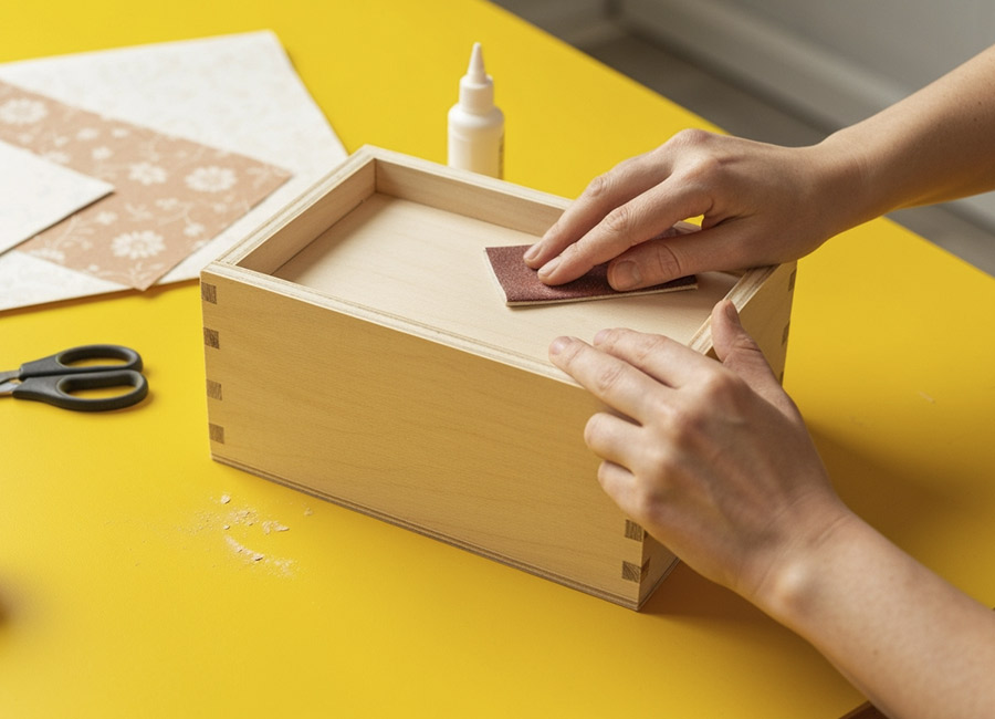 Asegúrate de limpiar a fondo la superficie del objeto que deseas trabajar mediante la técnica decoupage. Si es necesario, lija suavemente para obtener una superficie uniforme.