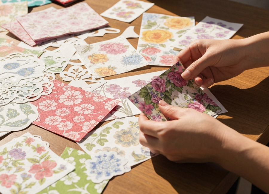 Elige los recortes de papel o tela que utilizarás en tu proyecto. Puedes optar por revistas, servilletas especiales para decoupage o incluso tus propios diseños impresos. ¡Tu creatividad manda!