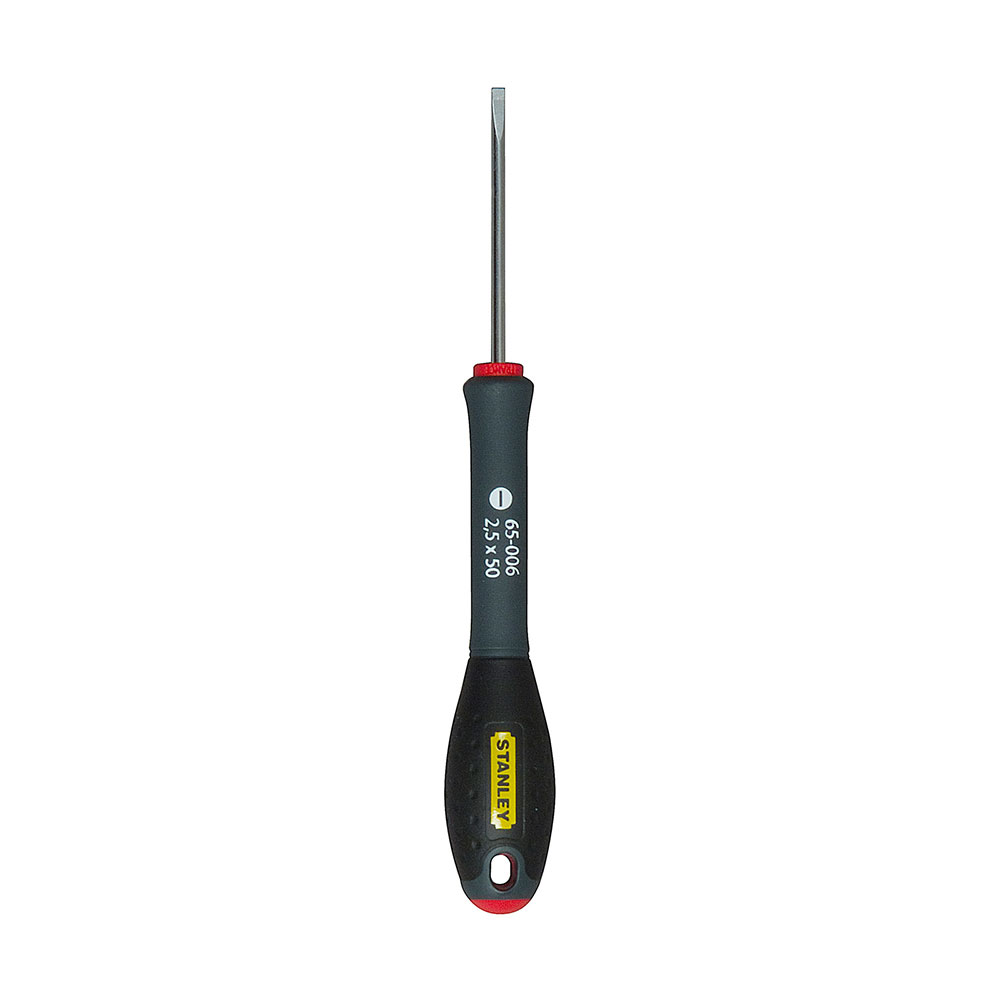Destornillador de electricista con mango bimateria ergonómico y de gran diámetro, lo que ofrece una gran capacidad de torsión. Cuello delgado para una rápida rotación. El mango está moldeado directamente sobre la varilla de acero. Se puede colgar gracias a su agujero en el mango. Código de color en el mango para identificación del tipo de punta.