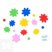 Flores de goma Eva adhesiva en seis colores distintos. Ideales para potenciar la creatividad de los más pequeños complementando trabajos de manualidades. Incluye dos medidas: 24mm y 32mm.