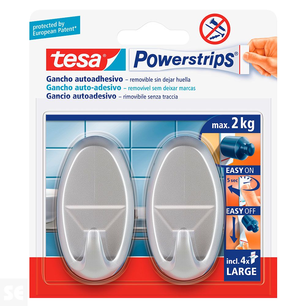 - Este producto no es apropiado para su utilización sobre espuma de poliestireno, materiales espumados, superficies con revestimiento antiadherente, materiales porosos.Ganchos adhesivos de gran tamaño, con diseño ovalado y de plástico, los Ganchos Grandes en acero inoxidable de tesa®.
