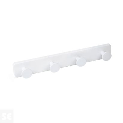 Percha de madera de pino con 4 pomos Laca color miel. Medidas: largo: 485 mm; fondo: 50 mm; alto 65 mm
