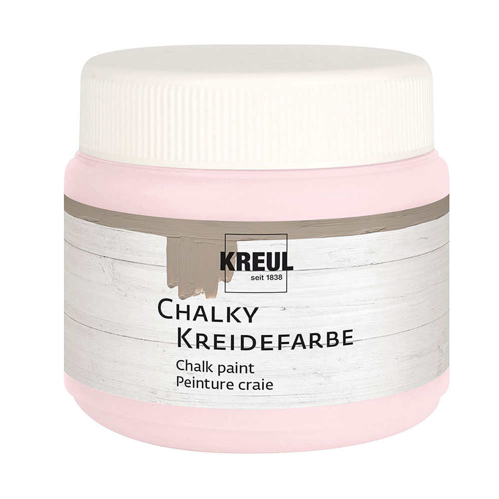 Pintura suave CHALKY efecto tiza mate.Tonos suaves y cremosos Con la pintura Chalky de KREUL, los productos nuevos se convierten en viejos y, .. Los artículos viejos, con una nueva capa de pintura, cuentan su propia historia en color. Los tonos nórdicos se combinan suavemente creando tonos muy agradables. Cuando se lija, el tono de color de la imprimación emergerá revelando el atractivo de la imperfección. CARACTERÍSTICASAcabado cremoso, secado rápido y resistente a la luz A base de agua Impermeable, resistente a la intemperie y a la saliva Para pintar madera, papel, cartón, espuma de poliestireno, piedra, hormigón seco, terracota, vidrio no resistente a los arañazo, cerámica, arcilla, metal, plástico, arcilla de modelar de secado al aire.. La gama de colores armoniosamente coordinados permite combinaciones de tonos de colores claros y oscuros, para un típico efecto vintage. Para trabajos creativos decorativos. Ideal como imprimación para Foto Transfer Potch y decoupage. Se puede aplicar con pincel o rodillo y para técnicas como el estarcido o el efecto craquelado