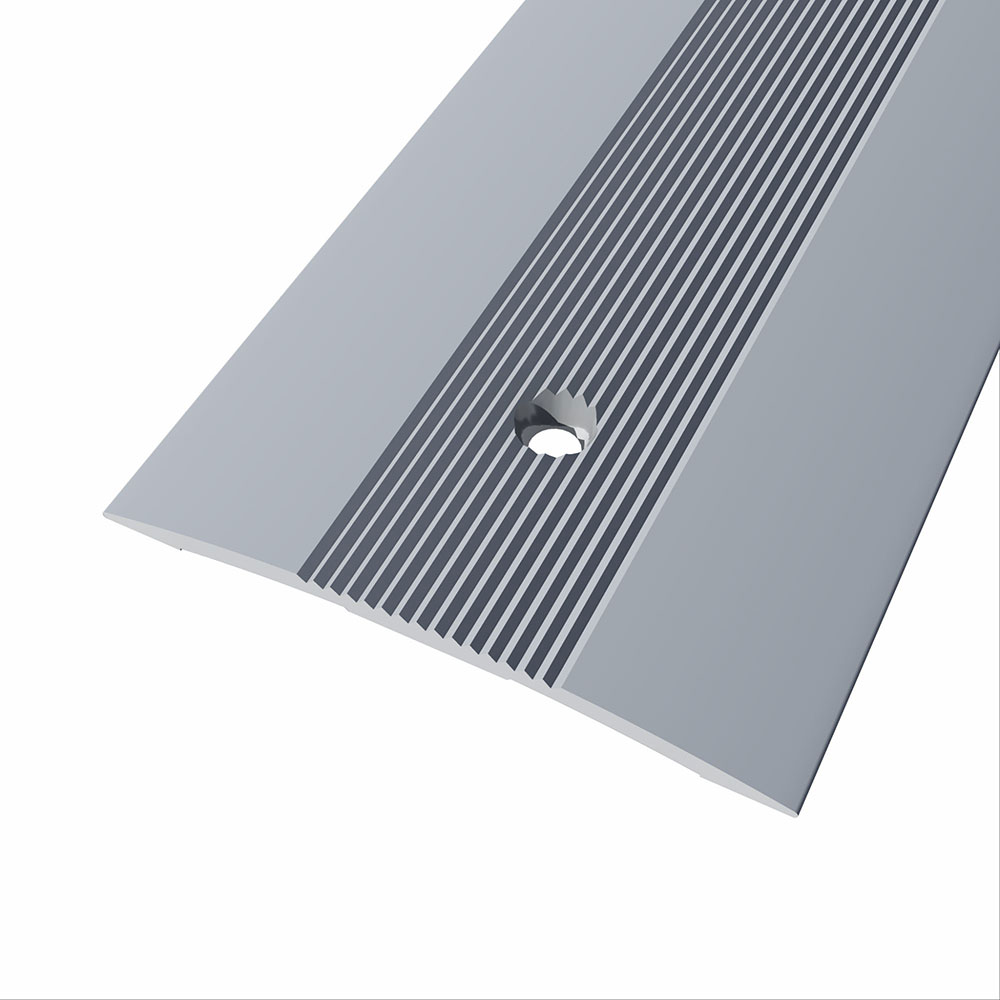 - Pletina paso de puerta Aluminio Plata Media Caña 40mm. Atornillar Estriada 83cm.