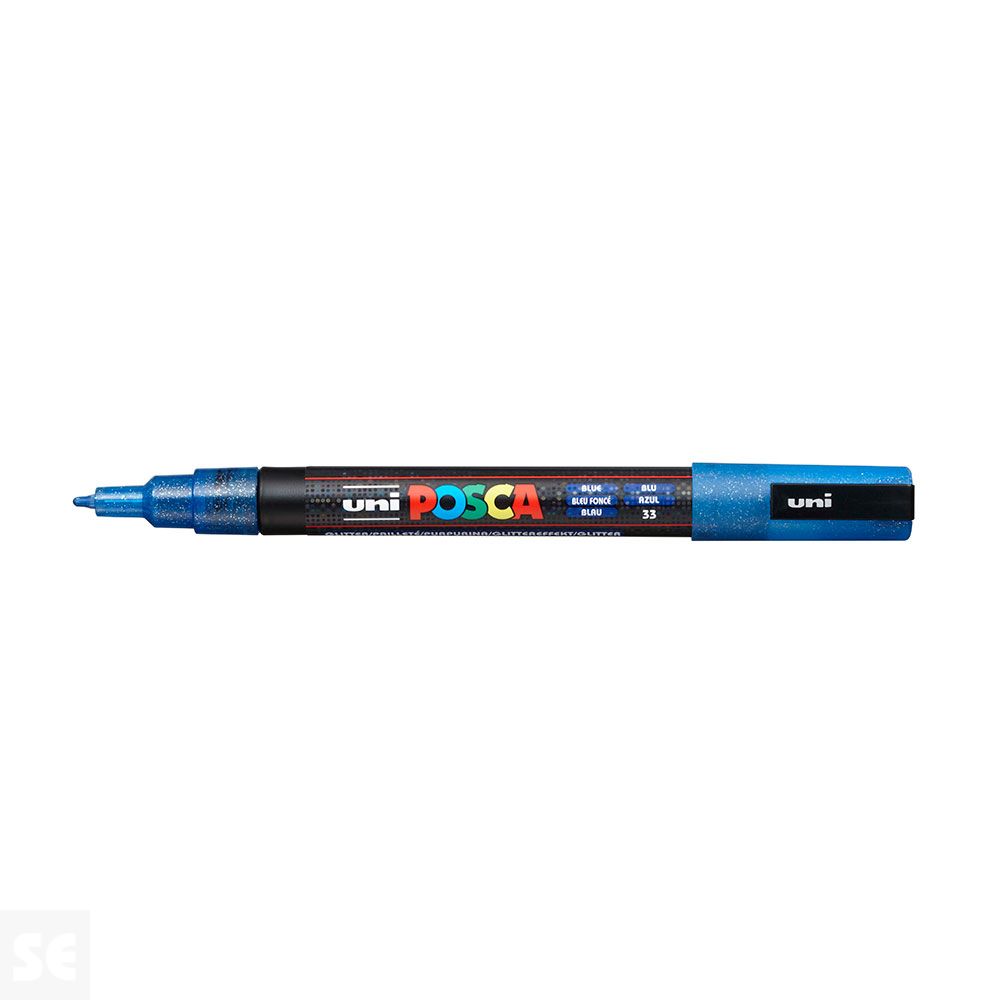 Rotulador Pintura Posca Azul Purpurina Pc-3m 0,9-1,3mm -- Punta de poliéster cónica.