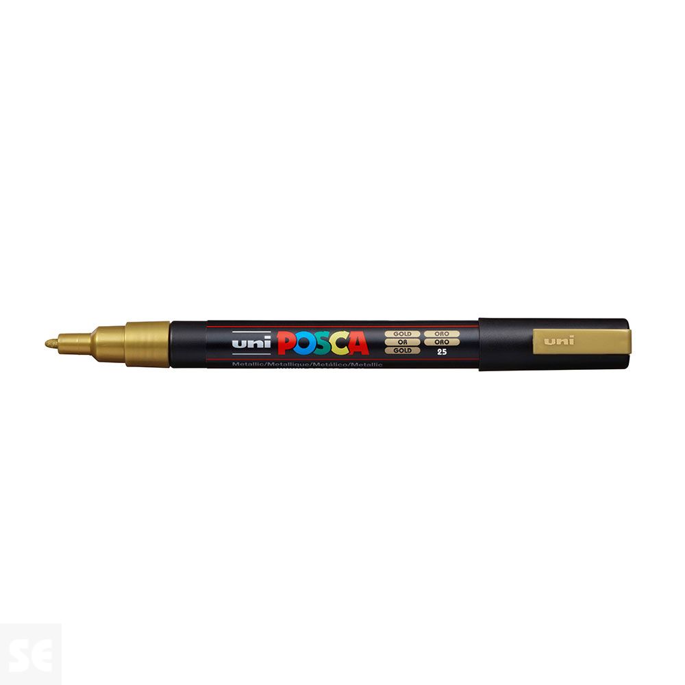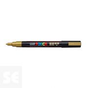 Rotulador Pintura Posca Oro Pc3m 0,9-1,3 mm. Cuerpo de plástico (PP). Marcador de pintura con tinta pigmentada base al agua. Pinta sobre cualquier superficie y es muy resistente a la luz. Es inodoro. Las manchas se pueden lavar con agua, desapareciendo inmediatamente. Ideal para cartelería, decoración, escaparatismo, posters, etc. Permanente sobre superficies porosas. NO ES TÓXICO.
