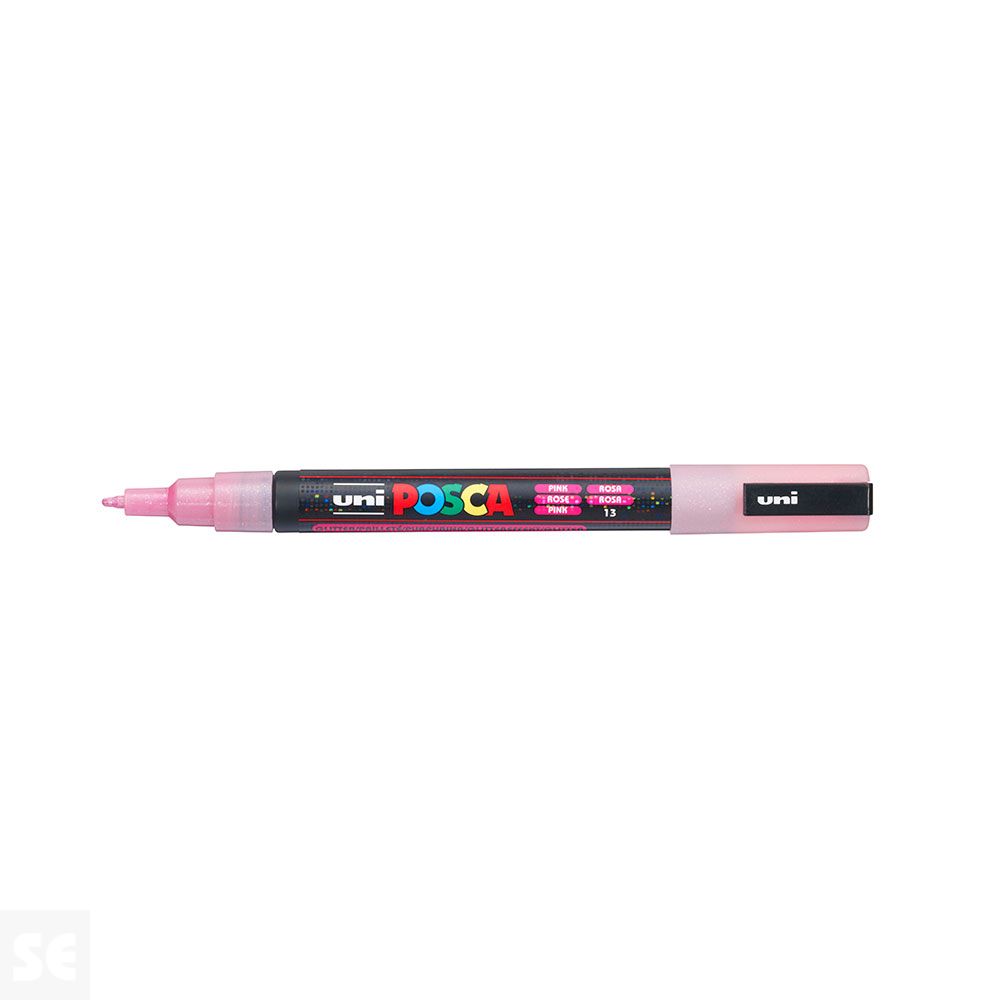 Rotulador Pintura Posca Rosa Purpurina Pc-3m 0,9-1,3mm -- Punta de poliéster cónica.