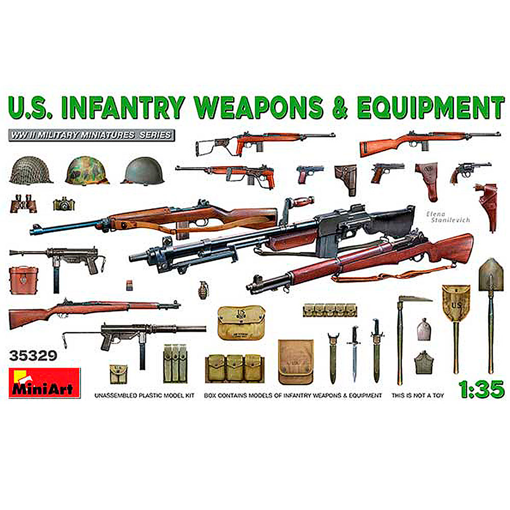 Maqueta MiniArt Accesorios Armamento y Equipamiento de Infantería US. II Guerra Mundial. Escala 1/35.