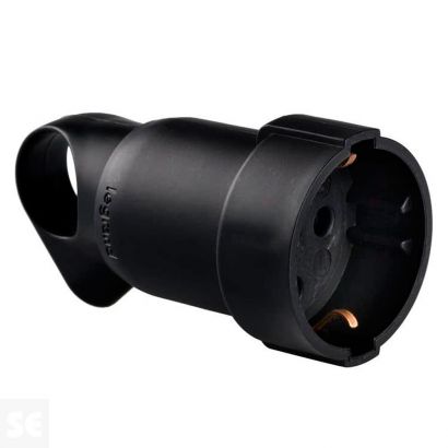 Base de PVC. 2P+T. 16 A. Salida de cable recto. Diseño compacto. Con abrazadera sujeta cables interna. Cable 3 x 1,5 mm² máx. Blanco.