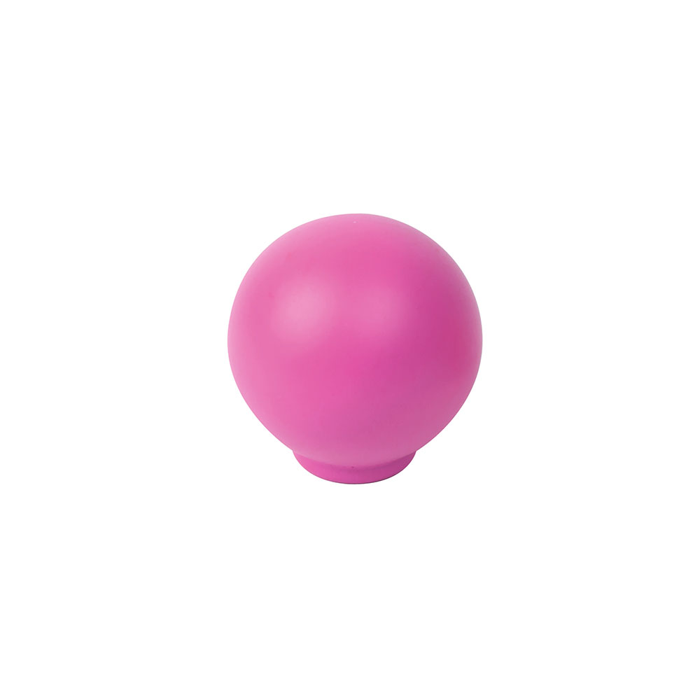 Pomo/tirador/percha para pared con forma de bola. Color magenta mate con acabado mate. Fabricado en plástico ABS. Medidas: diámetro: 29 mm; altura: 29 mm. Como pomo o tirador es ideal para armarios, cajones o cómodas.