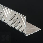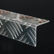 La cantonera de aluminio grabada estilo damero, destaca por ser un tipo de perfil de aluminio en forma de L, que se obtiene a partir de la extrusión del AL. Dicho producto se convierte en el material perfecto para la creación de marcos y acabados de todo tipo. Su acabado estriado en color plata presenta cierta brillantez, capaz de embellecer cualquier cerramiento industrial.