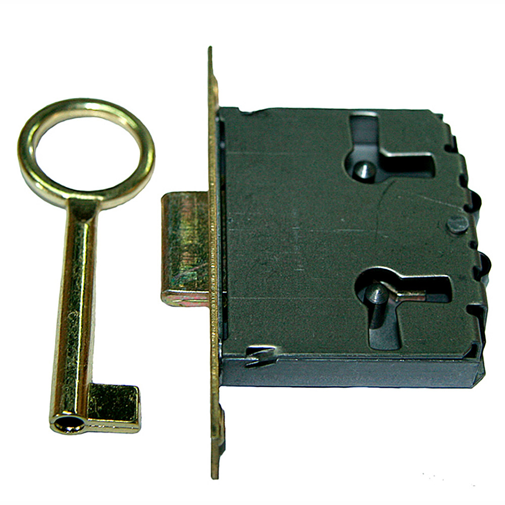 Cerradura de mueble de embutir de 35 mm fabricada en acero con acabado de color amarillo dorado.