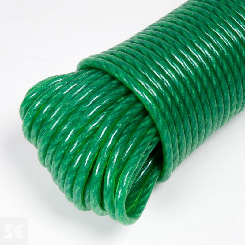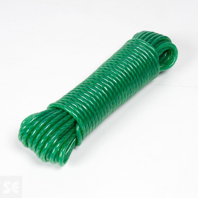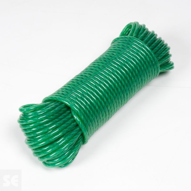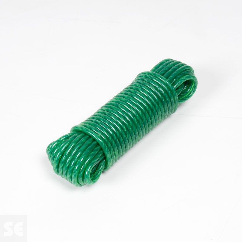 La cuerda de polietileno recubierta de PVC es la clásica cuerda de plástico de color verde o blanco para colgar la ropa, para las persianas, toldos y actividades de camping.