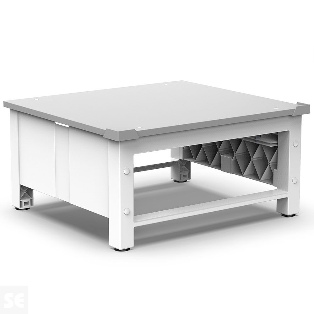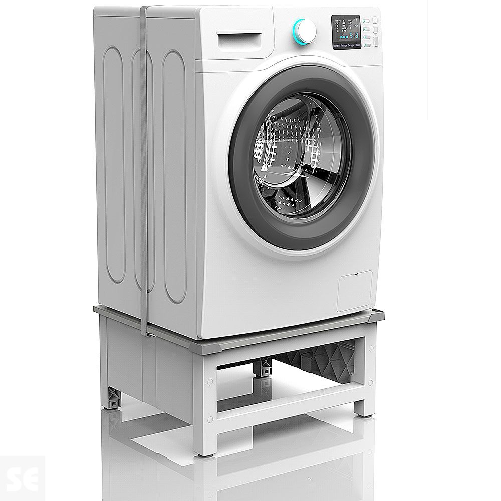 Elevación para lavadora/secadora con base de tecnopolímero. El aparato está colocado a 31 cm del suelo y permite limpiar fácilmente el suelo y hace que el el aparato sea mucho más fácil de manejar. Adecuado para lavadoras/secadoras u otros electrodomésticos con dimensiones máximas de 60x60 cm (en profundidad, los pies del aparato deben estar a una distancia máxima de 55 cm). No se oxida. Peso máximo 250 kg. 4 pies regulables en altura permiten nivelar el producto y por lo tanto el aparato. Los pies de goma permiten la máxima adherencia al suelo. Cinturón de seguridad de 6 metros con hebilla metálica suministrado (no requiere tornillos). Montaje fácil y rápido.