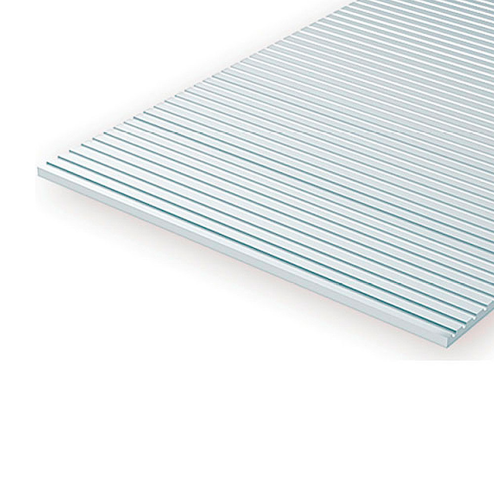 Evergreen escala HO. Hoja "Car Siding" de Estireno Blanco. Medidas: 15 x 30cm, 0,5 mm de grosor. Envase de 1 unidad.