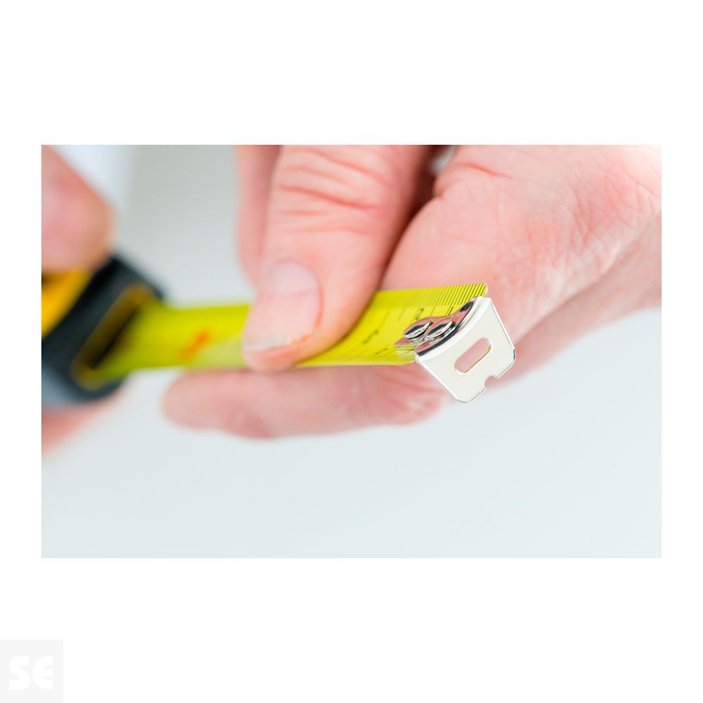 Flexómetro de cinta de acero ultra resistente con revestimiento Tylon™ que aumenta hasta un 50% la durabilidad de la hoja. Revestimiento mate de la cinta que facilita la lectura sin brillos. Diseño compacto de la caja con foma ergonómica, máximo confort y fácil manejo. Gran resistencia a los golpes gracias a la caja 100% contorneada de caucho que protege la cinta.