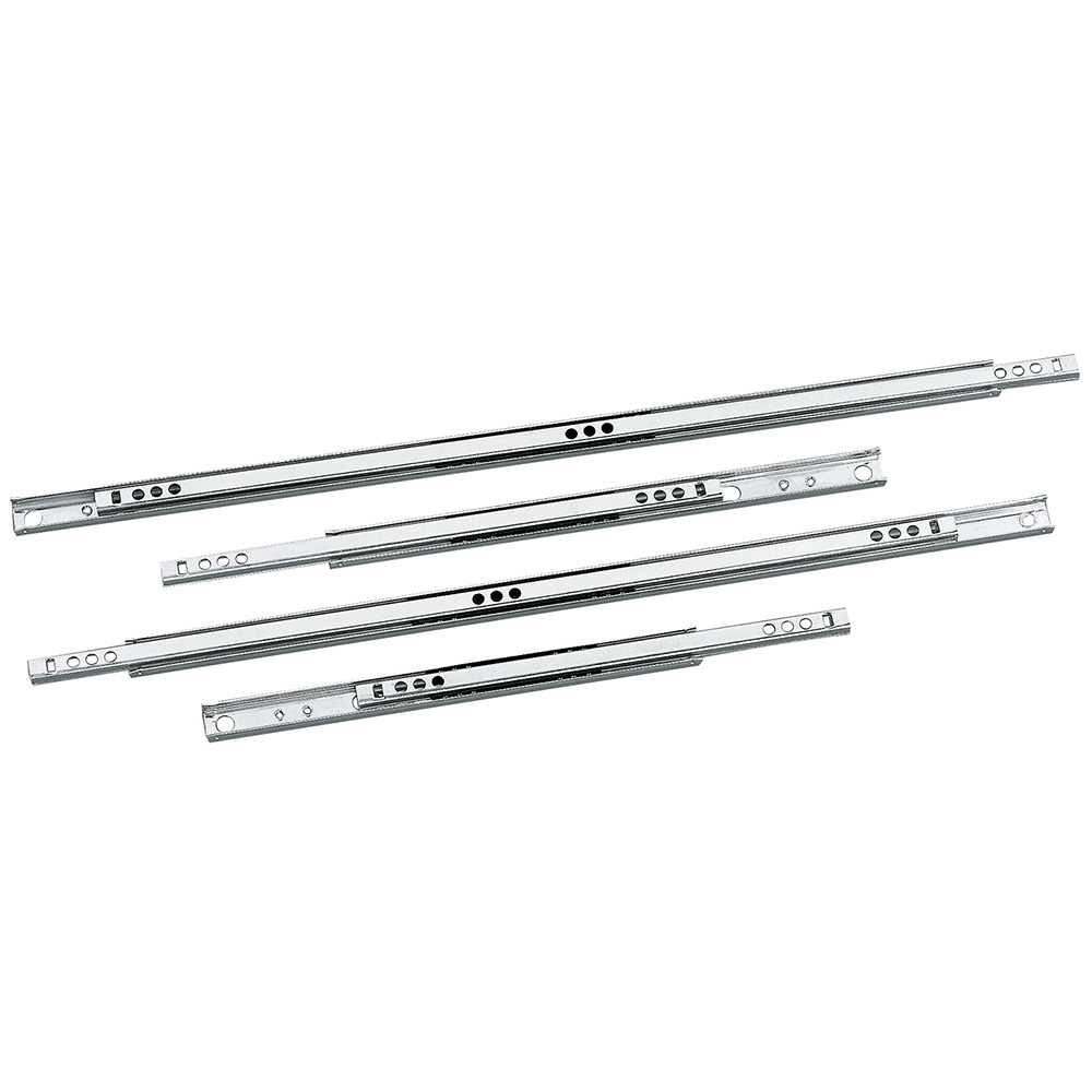 Guía corredera metálica de extracción parcial con bolas de acero. Para cajones.