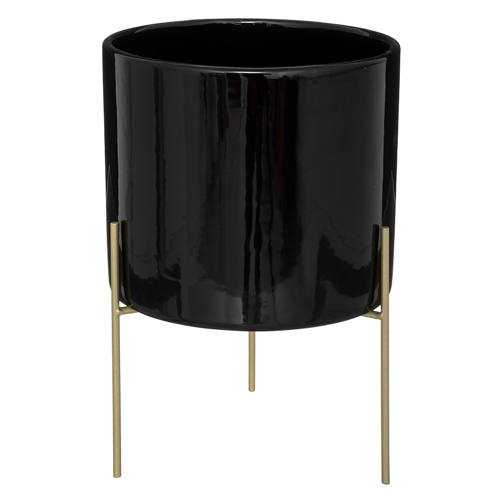 Maceta Sublima con diámetro de 19 cm de cerámica y con pie metal negro
