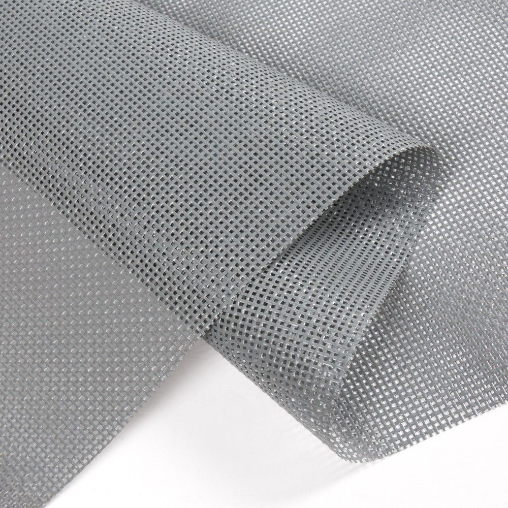 En la tienda de materiales de Servei Estació encontrarás malla de poliéster y PVC perforada con una anchura de bobina de 210 cm. El grosor del tejido es de 0,43 mm y la longitud es a metros.