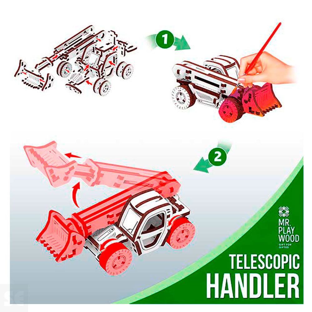 Mr. Playwood Camión Grúa 60 piezas - Maqueta mecánica de madera por piezas para montar. Modelo sencillo, fácil de montar. Color blanco.