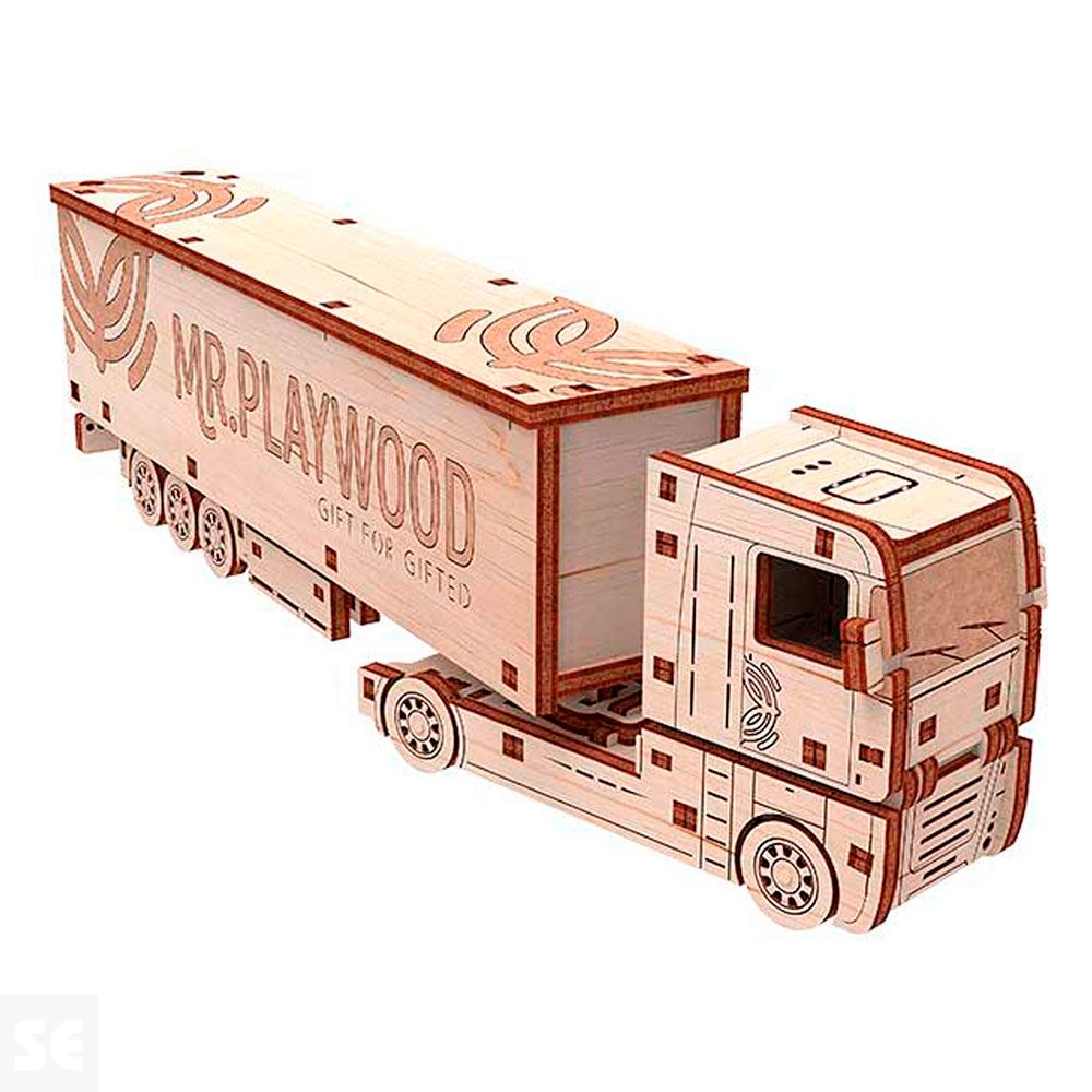 Mr. Playwood Camión pesado con Trailer 88 piezas - Maqueta mecánica de madera por piezas para montar
