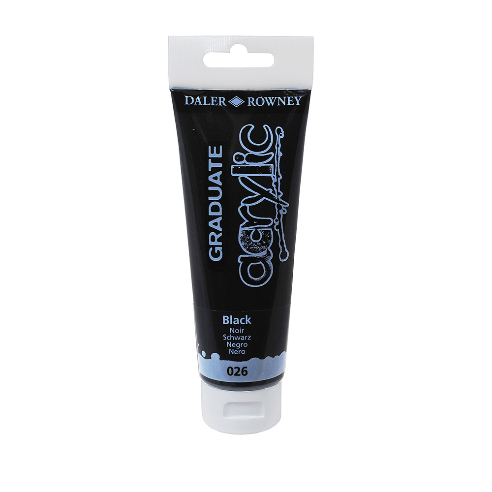 Pintura Acrílica Graduate Negro 120ml -- Daler-Rowney Graduate Acrylic es una gama asequible de colores al agua, ideal para estudiantes y aficionados que buscan fiabilidad y rendimiento.