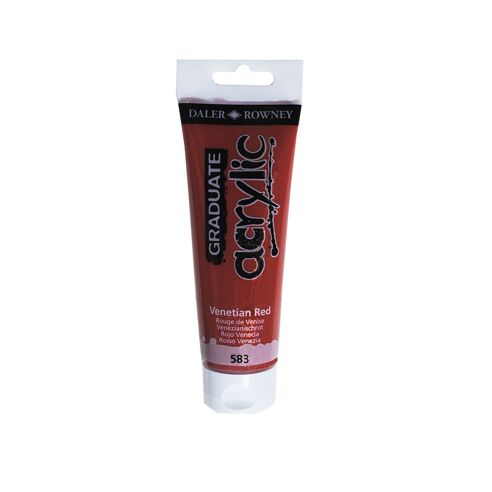 Colores flexibles que no se agrietan.Pintura Acrílica Graduate Rojo Veneciano 120ml -- Daler-Rowney Graduate Acrylic es una gama asequible de colores al agua, ideal para estudiantes y aficionados que buscan fiabilidad y rendimiento.