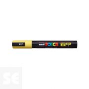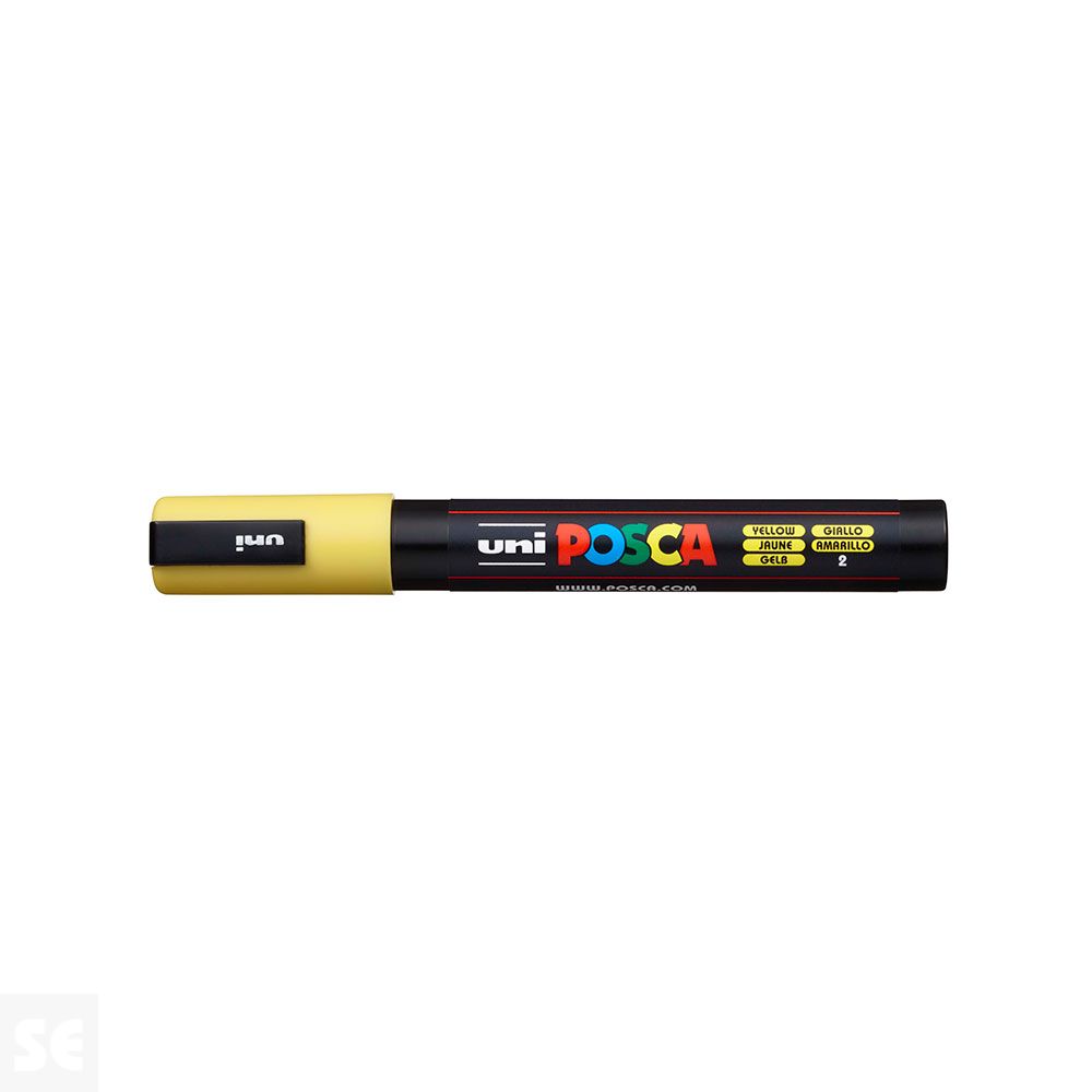Rotulador Pintura Posca Amarillo Pc5m 1,8-2,5 mm. Cuerpo de plástico (PP). Marcador de pintura con tinta pigmentada base al agua. Pinta sobre cualquier superficie y es muy resistente a la luz. Es inodoro. Las manchas se pueden lavar con agua, desapareciendo inmediatamente. Ideal para cartelería, decoración, escaparatismo, posters, etc. Permanente sobre superficies porosas. NO ES TÓXICO.
