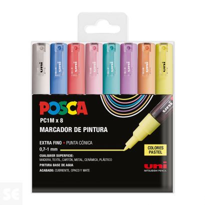 Rotulador Pintura Posca Azul Metálico Pc1mr 0,7 mm. Cuerpo de plástico (PP). Marcador de pintura con tinta pigmentada base al agua. Pinta sobre cualquier superficie y es muy resistente a la luz. Es inodoro. Las manchas se pueden lavar con agua, desapareciendo inmediatamente. Ideal para cartelería, decoración, escaparatismo, posters, etc. Permanente sobre superficies porosas. NO ES TÓXICO.