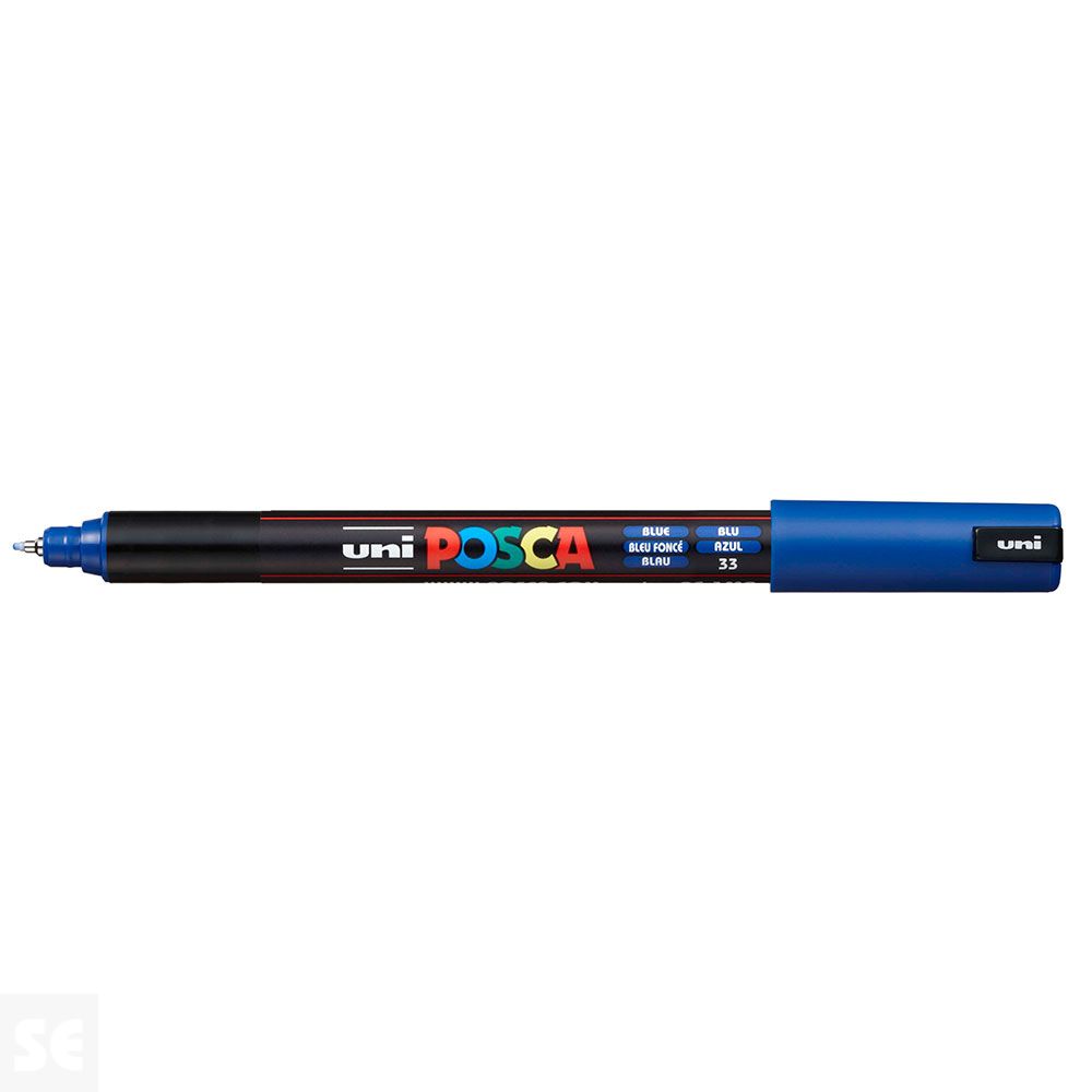 Rotulador Pintura Posca Azul Pc1mr 0,7 mm. Cuerpo de plástico (PP). Marcador de pintura con tinta pigmentada base al agua. Pinta sobre cualquier superficie y es muy resistente a la luz. Es inodoro. Las manchas se pueden lavar con agua, desapareciendo inmediatamente. Ideal para cartelería, decoración, escaparatismo, posters, etc. Permanente sobre superficies porosas. NO ES TÓXICO.