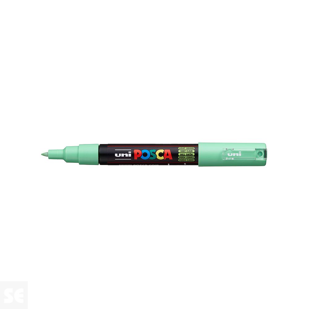 Rotulador Pintura Posca Verde Claro Pc1m 0,7 mm. Cuerpo de plástico (PP). Marcador de pintura con tinta pigmentada base al agua. Pinta sobre cualquier superficie y es muy resistente a la luz. Es inodoro. Las manchas se pueden lavar con agua, desapareciendo inmediatamente. Ideal para cartelería, decoración, escaparatismo, posters, etc. Permanente sobre superficies porosas. NO ES TÓXICO.