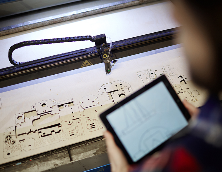 Dependiendo del material se utilizarán máquinas de corte robotizado con láser, fresadoras de alto rendimiento y/o corte con cuchilla o hilo caliente.