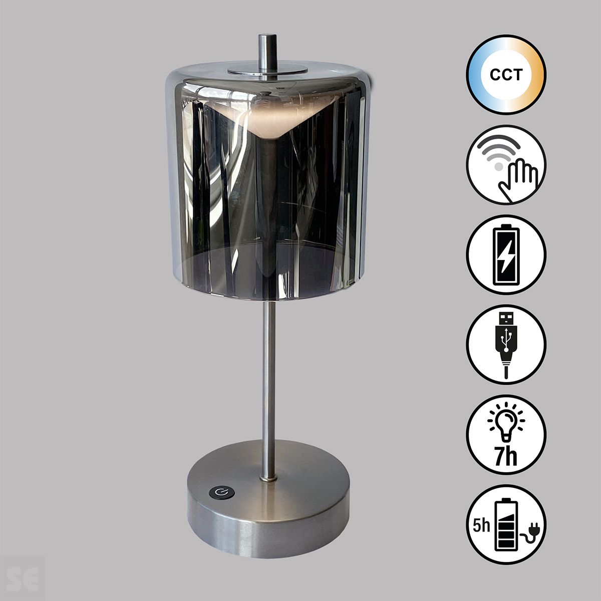 Sobremesa Recargable Riva Níquel/Smoke Ø13x34,5 cm LED 2W 240 lm 3000/4750/6500K