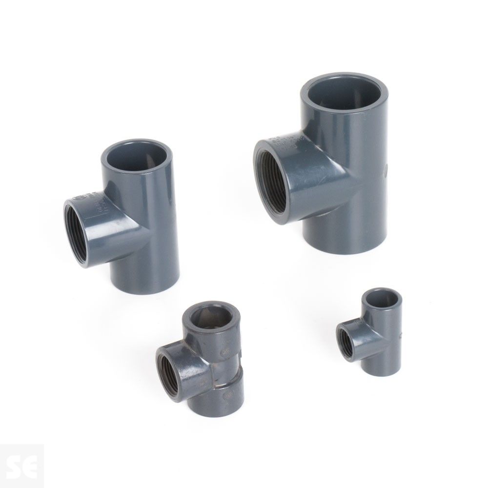 En Servei Estació, tu ferretería online de confianza, encontrarás T de PVC gris encolar y roscar en color gris y en varios diámetros a medida: 16, 20, 25, 32, 40 y 50 milímetros.