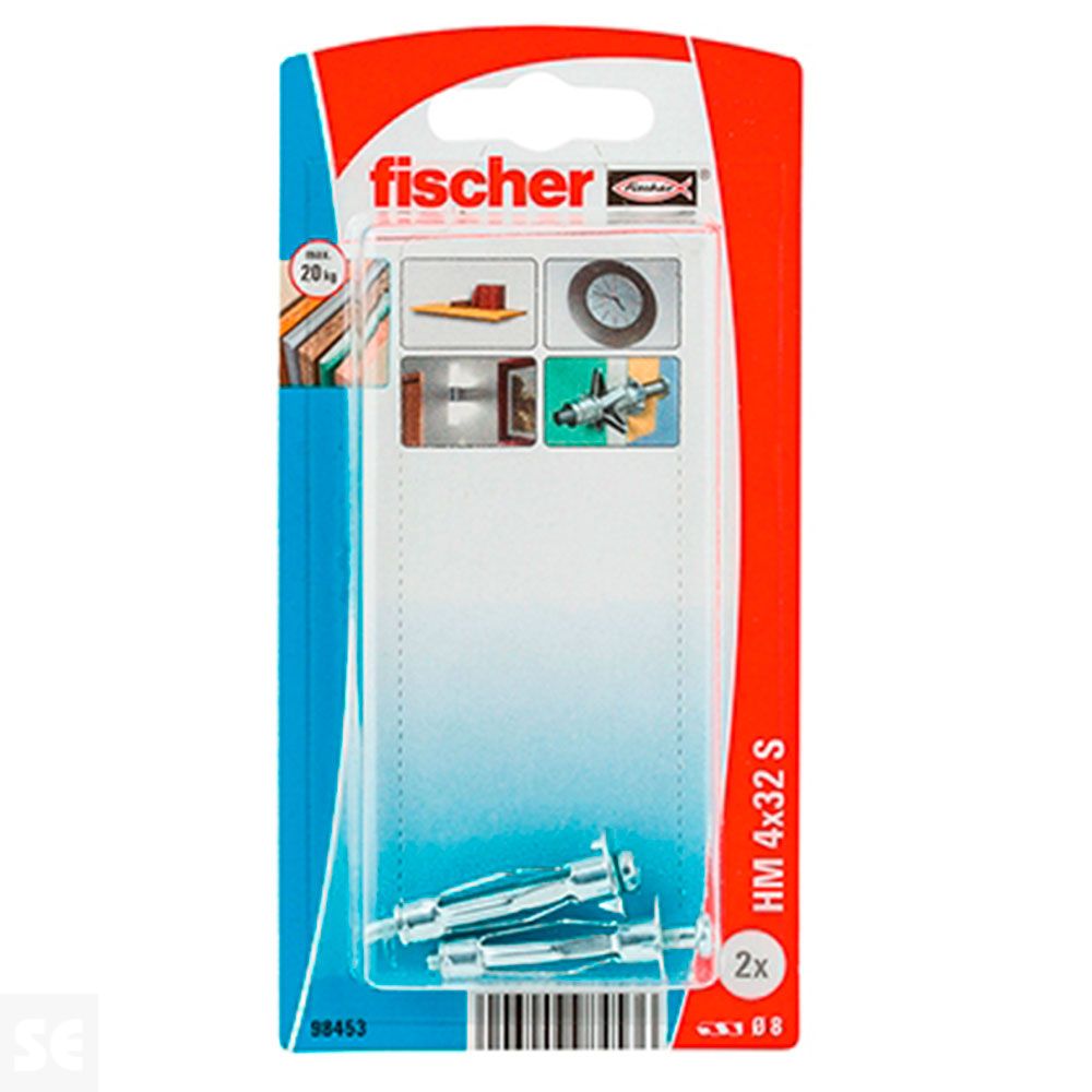 El anclaje metálico para cavidades huecas HM-S de Fischer es una fijación versatil con un tornillo de rosca métrica para todo tipo de contrucciones con paneles. La fijación se coloca mediante las pinzas de expansión HM-Z 1. Con estas pinzas conseguimos estirar de la fijación hacia afuera y contra el tablero. En este caso, los brazos metálicos del taco HM-M se expanden y presionan la placa de yeso por dentro, quedándose fuertemente sujeto. También podemos armarlo manualmente mediante un destornillador. El anclaje metálico HM-S sirve para colocar luces, colgadores de toallas o soportes para cortinas.
