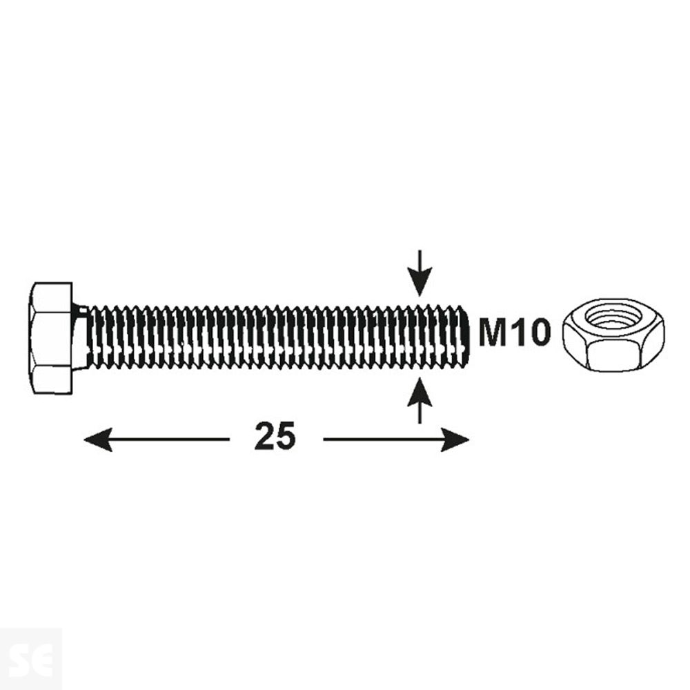 Tornillo Métrico Cabeza Hexagonal Vz 933 M.M. M8x100 -- Rosca completa incluye tuercas - accionamiento externo hexagonal - m10 x 25 mm - galvanizado - fabricado según din 933 - contenido del paquete: 75 piezas